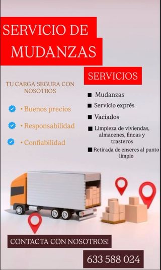 🚚💥 ¿MUDANZA A LA VISTA? ¿NECESITAS TRANSPORTE YA? 💥🚚 ¡Soy un chico joven, rápido y de confianza! Me dedico a: 🔹 Mudanzas y portes 🔹 Vaciado de pisos y trasteros 🔹 Montaje y desmontaje de muebles 🔹 Recogida y retirada de enseres al punto limpio 🔹 Recados y transportes urgentes ✨ Trabajo profesional, limpio y al mejor precio. ✨ Puntualidad garantizada. ✨ Trato cercano y soluciones al momento. ¿Quieres comodidad y un servicio sin complicaciones? 👉 Yo me encargo de todo. 📲 Pide presupuesto: 633588024 sin compromiso. ¡Disponibilidad inmediata!