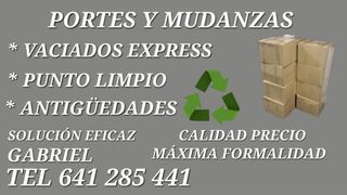 REALIZAMOS PORTES ECONOMICOS, MUDANZAS, TODO TIPO DE TRANSPORTES TAMBIÉN OTRAS CIUDADES MONTAJES DE MUEBLES, VACIADO DE PISOS PARA PUNTO LIMPIO, CONTAMOS CON 25 AÑOS DE EXPERIENCIA Y POLIZA DE SEGURO PARA SUS MERCANCIAS.