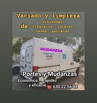 Realizamos todo tipo de Mudanzas , portes y vaciados , a nivel local y Nacional, varios vehículos disponibles,según sus necesidades. Presupuestos sin compromiso en el acto, años de experiencia nos avalan.