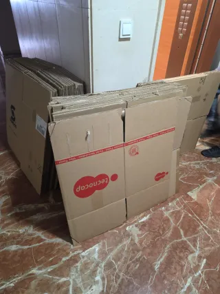 VENDO material que ha sobrado de mi mudanza: - plástico de burbujas alta calidad (60cm alto/diámetro 50cm = muuuuuchos metros!) - 12 cajas de cartón NUEVAS 30cm ancho × 50cm largo × 30cm alto sin tocar y aún en la caja original (la caja montada que aparece en la foto no entra en el lote porque la usé para mi mudanza). REGALO - 4 rollos de cinta adhesiva porque me los vendieron algo pasados (son los que usé para cerrar mis cajas y no hubo problemas teniendo un dispensador). Por separado serían: - 25€ las 12 cajas nuevas en su envoltorio (que compré a 3,50€ cada una) - 20€ el rollo de plástico de burbujas (que me costó 41€ entero, pe
