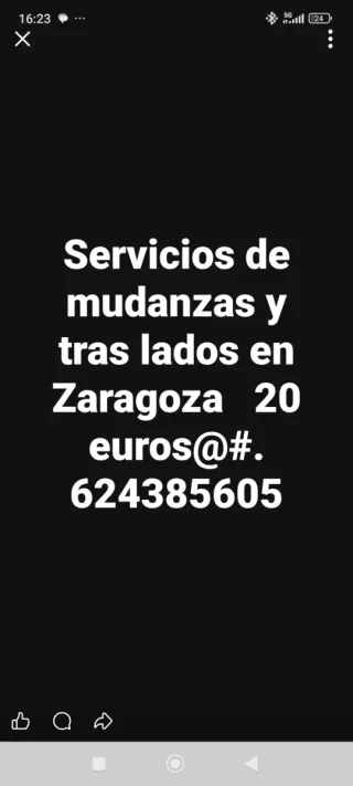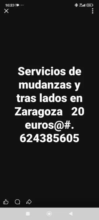🚛**Mudanzas y portes profesionales en Zaragoza y alrededores**.🚛 📦**Servicios de mudanza**: - Mudanzas de habitaciones, pisos, trasteros y oficinas - Mudanzas pequeñas y grandes adaptadas a tus necesidades - Transportamos muebles, electrodomésticos y más desde cualquier tienda a tu casa. 🚛**Portes de todo tipo**: - Rapidez y seguridad garantizadas - Flexibilidad de horarios - Servicio de confianza y atención personalizada 📍**Áreas de cobertura**📍 Zaragoza y localidades cercanas ☎️**Contáctanos hoy**☎️ 642761868