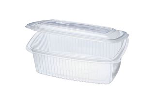 Recipientes con sellado hermético ideales para llevar y guardar diferentes tipos de alimentos. No apto para microondas. Tarrina loncheado PET transparente con tapa bisagra. Ayuda a proteger el producto y permite mostrarlo adecuadamente. Su estructura facilita el apilado ideal. Encuentra nuestros productos en materialesyenvases.com También en makro.es