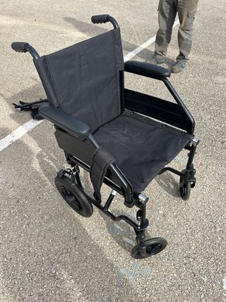 Silla de ruedas en buen estado, ideal para uso diario. - Plegable para facilitar el transporte y almacenamiento. - Estructura resistente y ligera. - Asiento cómodo y acolchado. - Ruedas en buen estado.