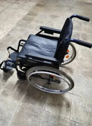 Silla de ruedas de calidad muy robusta, con motor auxiliar que ayuda a desplazarse sin esfuerzo, con equipo de baterías recién cambiado y funcionando perfectamente, el motor se quita y se pone para poder plegar la silla y transportarla a todos sitios, venta directa no se hacen envios, urge venta