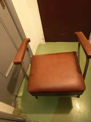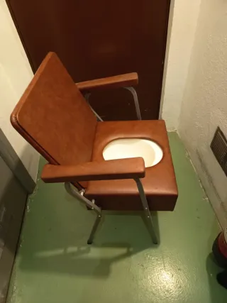 Silla cómoda y práctica con asiento para inodoro. - Estructura metálica. - Asiento de polipiel. - Brazos acolchados.