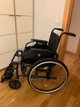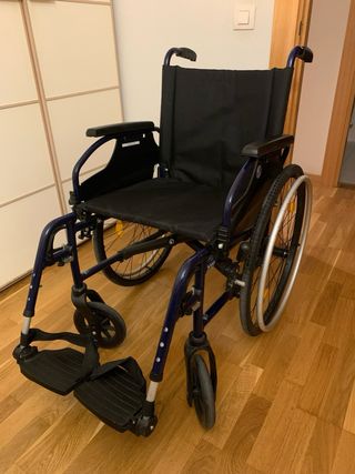 Silla de ruedas manual Invacare Action 1R en color azul. No ha usado nada!! - Estructura ligera y resistente. - Ruedas traseras grandes para mayor autonomía. - Reposapiés ajustables.