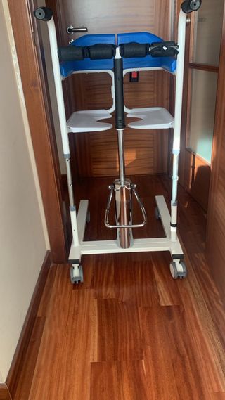 Muy poco uso está como nueva. Tengo los papeles y está en garantía todavia. Grúa eléctrica de elevación, traslado y movilización de pacientes. Dispone de un indicador de nivel de batería, aviso acústico cuando esta llega al 50 % de su capacidad y permite realizar una bajada de seguridad en el caso de que la grúa se quede sin batería.Gracias a sus reducidas dimensiones esta grúa permite su manejo en el interior de casa con mucha facilidad. Arnés incluido.Debido a sus dimensiones esta grúa es ideal para viviendas pequeñas, si es cierto que al ser más reducida su altura de elevación de la percha, también es más reducida.