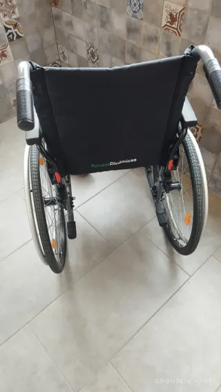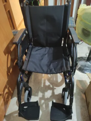 Silla Gadesvario modelo AGV utilizada durante 2 meses por persona joven, cuidada, aunque con algunos arañones en la zona metálica de la rueda. Acompañada de un extensor para la pierna izquierda, plegable y de varias alturas para poder a la calle con la pierna en alto. Tiene libro de instrucciones. Soporta hasta 130 kg. Recogida en mano.