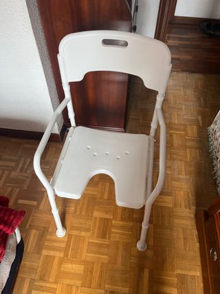 Silla de transferencia para ducha y WC, a estrenar. - Cómoda y fácil de usar. - Asiento acolchado. - Reposabrazos acolchados. - Ruedas para facilitar el movimiento. - Incluye orinal.