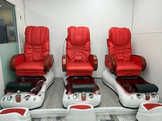 Se venden sillones de pedicura profesionales en muy buen estado. Cada sillón incluye: • Asiento acolchado y cómodo con respaldo alto • Función de masaje • Reposabrazos • Base de hidromasaje para pies Ideales para centros de estética, peluquerías o spas. Han sido usados en entorno profesional y se encuentran en funcionamiento (pueden tener detalles del uso) Se venden por renovación de local. Se venden juntos (los 3) precio por los 3, para retirar del 2 al 6 de febrero. Se encuentran en zona de Valdebernardo