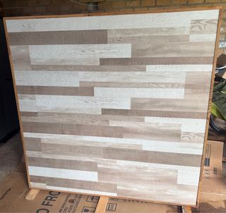 Tarima de madera y plástico para pedicura. Su diseño imita la madera envejecida. - Base estable para tratamientos de pies. - Acabado rústico y moderno. Tevestida de suelo laminado