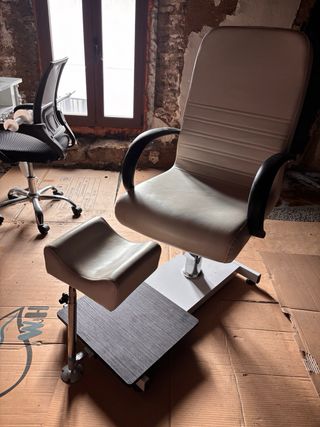 Vendo sillón profesional para pedicura/estética en muy buen estado. Tapizado en tela gris, cómodo y estable, con base metálica. Incluye reposapiés/banqueta a juego (ver fotos). Ideal para salón de belleza, centro de estética o uso en casa.