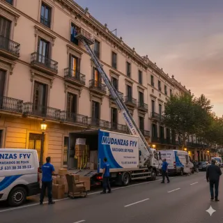 Es un placer ayudarte. 🚚 Mudanzas FYV | ¡TODO en un solo lugar! Gracias por comunicarte con nosotros. Visita nuestra página web para ver nuestros trabajos: MudanzasFYV.com Nuestros Servicios Destacados: * ❤️ Grúa Elevador de Muebles: ¡Acceso hasta el 4º piso! Tu mudanza más rápida y segura. * 📍 Rutas Nacionales: * MUDANZAS DE BARCELONA A MADRID * MUDANZAS A VALENCIA * 🛠️ Servicios Integrales: * Montajes * Embalajes * Protección de muebles * 🗑️ Vaciados de Pisos: Con camión y operarios. * 🎨 Pintor Experto de Pisos y Casas: ¡Aprovecha nuestras OFERTAS combinadas con tu mudanza! 🌟 Nuestro Compromiso Ofrecemos