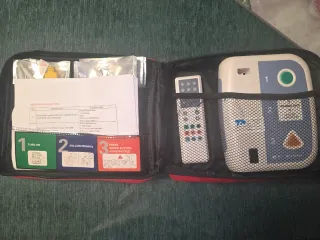 Vendo maravilloso Desfibrilador de Formación usado en 2 cursos. Tiene varios idiomas, predeterminado de serie en Castellano. Incluye: -DESA de formación. -Mando a distancia para los distintos escenarios. - 2 parches infantiles (1 usado) -3 parches adultos (1 usado) -Manual de instrucciones -Bolsa de transporte Los parches usados siguen pegando igual que el primer dia. ¡¡¡OJO, NO DESFIBRILA, ES UN OBJETO DE SIMULACIÓN PARA CURSOS DE PRIMEROS AUXILIOS, TAMPOCO ES UN JUGUETE!!! **Aceptaría cambio por algo de mi interés**