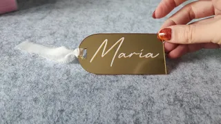 Marcasitios ideales para bodas, bautizos, comuniones, cumpleaños o cualquier evento especial. Están hechos en metacrilato efecto espejo dorado, con el nombre en vinilo blanco y detalle de gasa blanca a juego que aporta un toque elegante y delicado. Perfectos para decorar la mesa y además sirven como recuerdo para los invitados. ✔ Personalizados con el nombre que quieras ✔ Diseño elegante y moderno ✔ Reutilizables como decoración o recuerdo Se realizan por encargo. Precio según cantidad.