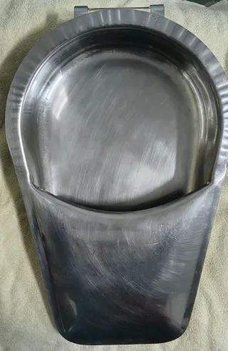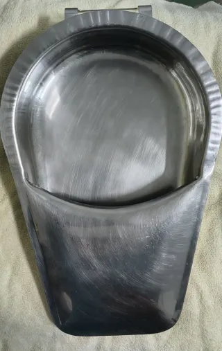 CUÑA DE ACERO INOXIDABLE CON ASA DE USO SANITARIO PARA PERSONAS ENCAMADAS. EVITA QUE SE DERRAMEN LIQUIDOS Y SOLIDOS.APTA PARA SER DEIANFECTADA POR TODOS LOS METODOS POSIBLES.