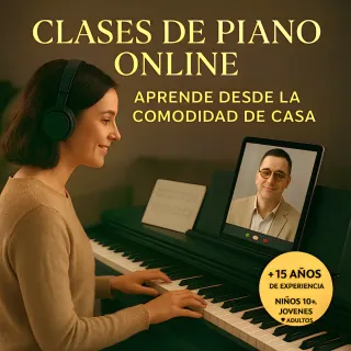 CLASES DE PIANO ONLINE - INDIVIDUALES Y EN VIVO 🎹 ¡Aprende a tocar desde la primera sesión! Clases 100% online y personalizadas. 🎓 MÉTODO PRÁCTICO: ✅ Digitación, lectura musical y teoría aplicada. ✅ Ejercicios de calentamiento. ✅ Repertorio a tu gusto: Clásico, popular y bandas sonoras. 👨🏫 SOBRE EL PROFESOR: ✅ Formación en América y amplia experiencia. ✅ Nota: Acento latinoamericano. ✅ Horarios flexibles. ✅ ¡Primera clase gratis! 💰 PAQUETE MENSUAL: 40 € ✅ Incluye 4 clases de 50 minutos. ✅ Equivale a 1 clase por semana. 📞 Contáctame, será un gusto atenderte.