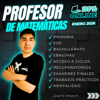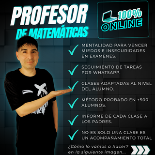 CLIC EN LAS IMÁGENES PARA MUCHAS MAS INFORMACIÓN + de 15 años de experiencia ayudando a estudiantes a mejorar su rendimiento en matemáticas y física. 💪✨ No solo enseño, también motivo y preparo psicológicamente a mis alumnos para que enfrenten los exámenes con seguridad y confianza. 🎯 Seguimiento por whatsapp. 📝 Clases 100% online. 📖 Apoyo en Primaria, ESO (Educación Secundaria Obligatoria), Bachiller. Estoy aquí para ayudarte a entenderlo todo sin agobios. ❌ ¿Cansado de que tu hijo/a suspenda exámenes? 💬 ¡Escríbeme ahora y nos pondremos manos a la obra! 📲 ⚠ IMPORTANTE ⚠: 🚩NO DOY CLASES PRESENCIALES, SON 100% ONLINE 🚩