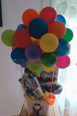 Las cestas van al gusto de cada uno, son con forma de capazo hecha de pañales y puede ser del tamaño que quieras, del color que quieras o adornarla como quieras o la forma que prefieras, tambien puedo enviarlas a donde queráis a cargo de cuestra cuenta