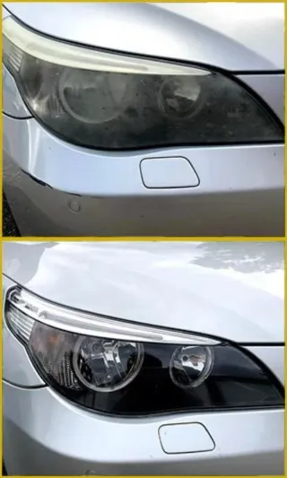Pulido de faros para eliminar opacidad y amarilleo. Mejora la estética y la iluminación del coche con acabado en polímero líquido para mayor duración. Si te interesa, escríbeme y lo vemos.
