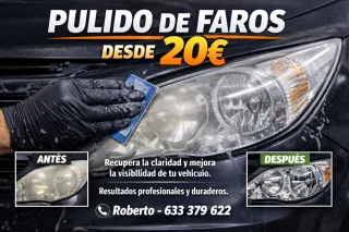Pulido de faros desde 20€ Recupera la claridad y mejora la visibilidad de tus faros. Resultados profesionales y duraderos. 📞 Roberto – 633 379 622