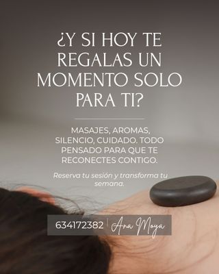 ✨ Quiromasaje y Estética Premium ✨ Quiromasajista y profesional en estética corporal, especializada en liberar tensiones profundas, mejorar el bienestar corporal y realzar la piel con técnicas innovadoras. No realizó un masaje estándar. Cada sesión es individual, cuidada y adaptada a ti. ✔ Quiromasaje descontracturante ✔ Masaje relajante profundo ✔ Tratamientos faciales profesionales ✔ Resultados visibles desde la primera sesión 🌿 Atención profesional, correcta y de alto nivel ⏳ Citas ✨ Ideal para personas que valoran calidad y profesionalidad 📩 Escríbeme directamente y reserva tu espacio llamadas y WhatsApp 614039856