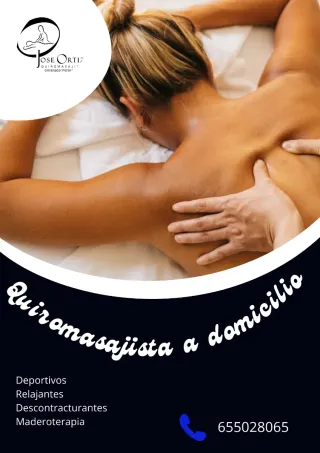 ¿Estrés, contracturas, dolor muscular o simplemente necesitas relajarte? Te ofrezco servicio de quiromasaje profesional en la comodidad de tu hogar. 🔹 Masaje descontracturante 🔹 Masaje relajante 🔹 Masaje deportivo 🔹 Alivio de tensiones y sobrecargas musculares ✔️ Atención personalizada ✔️ Material propio (camilla, aceites, etc.) ✔️ Puntualidad y máxima higiene ✔️ Experiencia y trato profesional Ideal para personas con poco tiempo, deportistas o quienes prefieren evitar desplazamientos. 📍 Servicio a domicilio 📆 Horarios flexibles 💬 Contacta sin compromiso para más información o reservar tu cita Tu bienestar empieza en casa. ¡Reserva
