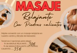 Bonos y ofertas; -Relajante(espalda,glúteos y piernas)50 minutos 20eu. -Descontracturante espalda 30 minutos 15 eu. -Reflexologia podal 30 minutos 15 eu. -Dos masajes relajantes 50 eu . Porfavor llamen por teléfono o wasap 655142175