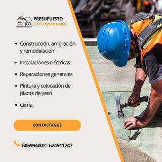 hacemos todo tipo de instalaciones de fontaneria,tuberias de alcantarillado, temas de levantar tabiques, pladur,ladrillo,..etc, reparaciones electricas en casas, cambio de enchufes,cuadros,puntos de luz,..etc, instalacion de puertas correderas,y puertas normales, inmuebles de cocina y baño,instalaciones de electrodomesticos, instalacion y arreglos de ventanas, y/o persianas , reformas integrales de baño y cocina y mas, preguntar sin compromisos ,tlf: 632313970