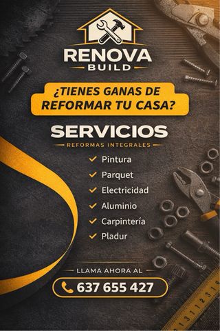 ¡Transforma tu piso con reformas integrales de calidad! Más de 15 años de experiencia nos avalan. Ofrecemos: 1. Reforma total de cocina 2. Reforma completa de baño 3. Instalación eléctrica nueva 4. Pintura de paredes y techos 5. Parquet laminado 6. Puertas interiores 📏 Precios orientativos: • 50 m2: desde 19.350 € • 60 m2: desde 23.500 € • 70 m2: desde 27.450 € • 80 m2: desde 31.000 € ✅ Materiales de calidad, resultados garantizados y atención personalizada. ✅ Presupuestos claros, sin sorpresas. 📞 Contacta ya para un presupuesto gratis sin compromiso. ¡Renueva tu hogar con confianza y profesionalismo. 623 25 48 20 (whatsapp)