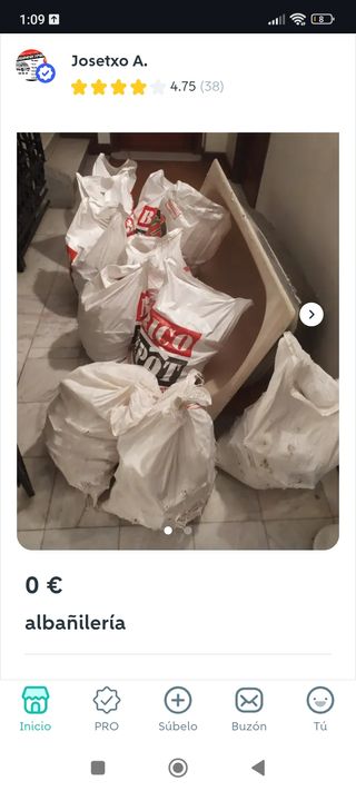 Demoliciones Hola buenas se retira escombro ya en sacos o se recoge en sacos.. , también se tiran tabiques , se pica paredes techos, tambien se vacia todo el interior del inmueble completo para nueva obra de la vivienda armarios de cocina, encimera , baños ,inodoros..etc se recoge en sacos y se retira , precios económicos ha negociar.. atiendo mediante whatsapp e-mails y llamadas!!! No dudes en pedírme presupuesto!! Palabras gancho: escombro, escombros, desescombro,desescombros, sacos , saco, contener, pared, tabique, techo, Pladur , azulejos, azulejo, baños , inodoro, bidé reforma, albañilería, sofá, BMW, salón, cocina,