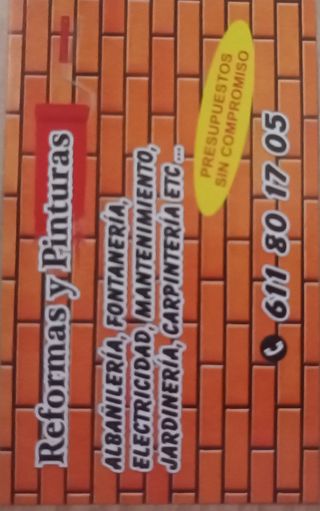 Todo tipo de reformas y mantenimientos económicos. Fontaneria, albañileria, electricidad, pladur, pintura, carpinteria.... Pregunte sin compromiso. NÚMERO DE TELÉFONO: 624378553