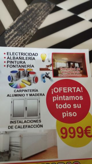 TRAMITAMOS LAS AYUDAS Y LOS PERMISOS PRESUPUESTOS SIN COMPROMISO *ELECTRICIDAD *ALBAÑILERÍA *PINTURA *FONTANERIA *CARPINTERÍA/ ALUMINIO Y MADERA *INSTALACIÓN DE AIRE ACONDICIONADO *PROYECTOS DE ARQUITECTURA E INTERIORISMO "OFERTA"PINTAMOS TODO SU PISO POR 999€" *MANTENIMIENTO DE JARDINES *LIMPIEZA Y MANTENIMIENTO DE PISCINAS NUESTROS TRABAJOS REALIZADOS AVALAN NUESTRA GARANTIA DE RAPIDEZ Y CALIDAD.. TELEFONOS:932630893 / 632843494 Carrer franća 60, Of.J - Hospitalet de Llobregat ESTAMOS EN CAMPAÑA DE OFERTAS EN REFORMAS, PINTURAS, EN CASTELLDEFELS, VILADECANS,GAVA APROVECHALO....