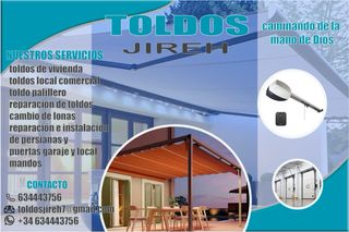 Nuestros servicios: *toldos de vivienda *toldos local comercial *toldos palillero *reparación de toldos *cambio de lonas *reparación e instalación de persianas, puertas garajes y local * mandos * kit motor puerta corredera industrial *caja de seguridad desbloqueo * centralita de motores *mandos de garajes *kit motor enrollable *centralita * 2 mandos * electro freno *eje completo