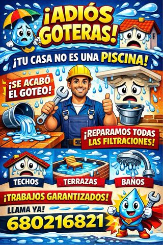 *¡Protege tu Hogar! 🌟* Mantenimiento Preventivo de Tejados, Impermeabilizaciones, Limpieza de Canalones y Eliminación de Goteras ¿Quieres evitar problemas costosos y garantizar la seguridad de tu familia? Nuestro equipo de expertos ofrece servicios integrales para mantener tu tejado en perfecto estado: - *Mantenimiento Preventivo de Tejados*: Inspecciones a fondo y reparaciones para evitar daños mayores. - *Impermeabilizaciones*: Protege tu hogar de filtraciones y humedad. - *Limpieza de Canalones*: Elimina obstrucciones y asegúrate de que el agua fluya correctamente. - *Eliminación de Goteras*: Soluciones efectivas.663851778