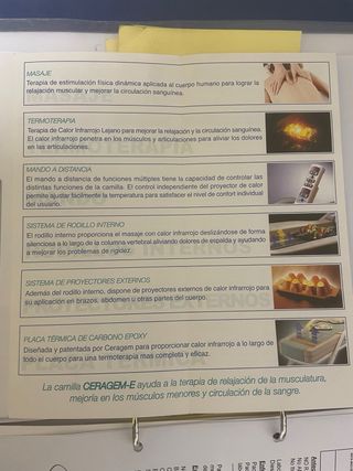 camilla con terapia de infrarrojos y masaje con rodillos que se deslizan suavemente. mando a distancia y proyectores externos de calor. venta en persona, no hago envíos.