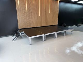 Alquiler de Escenarios modulares de alta calidad, ideales para conciertos, presentaciones, pasarelas, bodas, fiestas y cualquier tipo de evento. Plataformas robustas, antideslizantes y certificadas, con distintas alturas disponibles. Montaje rápido y seguro, podemos adaptar la superficie a la medida que necesites. Ofrecemos transporte, montaje y desmontaje o puedes recogerla y devolverla en nuestra nave de Madrid. ¡Nos ajustamos a tu presupuesto! Módulos de 2x1m con patas de la medida que necesites y escaleras Servicio 24/7
