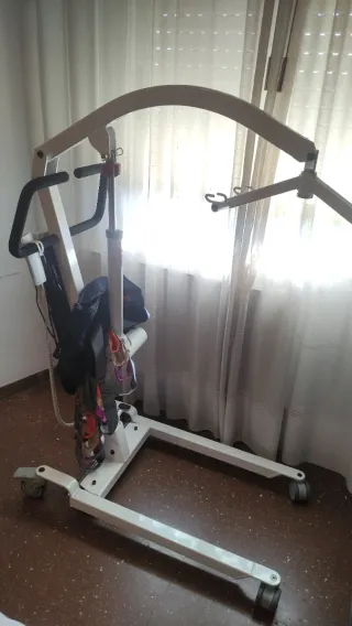 -Grúa Eléctrica para Cuidados con Arnés - ¡Oportunidad Única! ¿Buscas una solución segura y fácil para cuidar a tus seres queridos? ¡Esta grúa eléctrica es la respuesta! *Características:* - Capacidad para levantar hasta 150 kg - Fácil de manejar con control remoto - Arnés cómodo y ajustable para el paciente - Diseño compacto y plegable para ahorrar espacio - Poco uso, en excelente estado -Ideal para: - Hogares con personas con movilidad reducida - Centros de cuidado y residencias - Rehabilitación y fisioterapia -No te pierdas esta oportunidad!