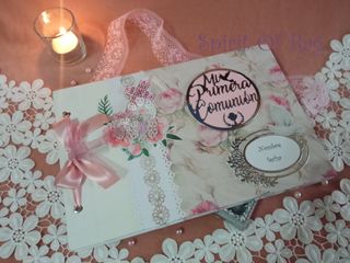 Disponible: Libro de firmas para comunión, totalmente hecho a mano, la encuadernación es estilo japonesa pero con la variante del lazo. En su interior tiene varios apartados para poner fotos, hojas para que amigos y familiares dejen sus buenos deseos o anécdotas, además de algunas cosillas para que pueda decorar a su gusto. Este libro en concreto es de temática "shabby chic". Hago envios a través de correos.
