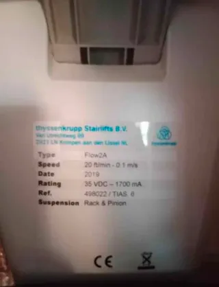 Se vende silla salvaescaleras de la marca Thyssenkrupp, modelo Flow2A, con poco uso. La silla viene con dos mandos a distancia incluidos y la estructura guía de la escalera en la que fue montada.