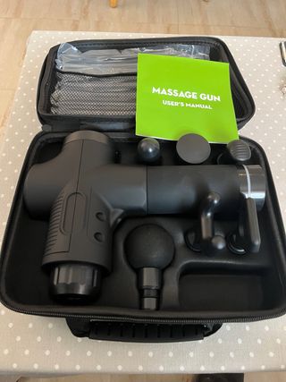Pistola de masaje totalmente nueva sin usar, tiene todos los accesorios e incluye maletín de viaje con bolsillo para el cargador y cable de carga. #masajeador