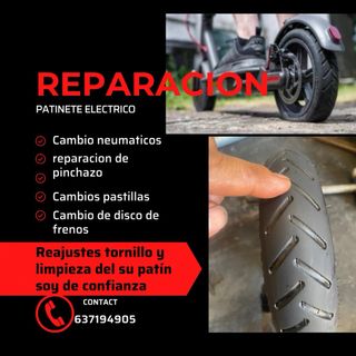 Ofrezco mis servicios para reparar pinchazos cambios de cámaras o neumáticos y neumaticos macizos llantas y pastillas de frenos le recojo su patín y se lo entregó limpio y revidado soy de confianza no dudes en llamar precio a combenir si los quieres cambiar no dudes en llamarme y llegaremos a un acuerdo 637194905