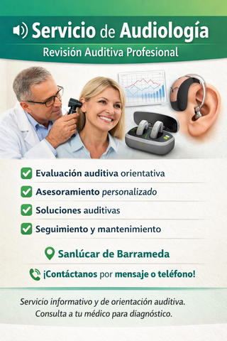 ¿Notas que no escuchas como antes o te cuesta seguir conversaciones? Ofrecemos revisiones auditivas personalizadas realizadas por audioprotesista titulado, con atención cercana y profesional. ✔ Evaluación auditiva orientativa ✔ Asesoramiento individual según tus necesidades ✔ Información y adaptación de soluciones auditivas ✔ Seguimiento y mantenimiento 📍 Atención en Sanlúcar de Barrameda 📞 Contacto sin compromiso por mensaje o teléfono
