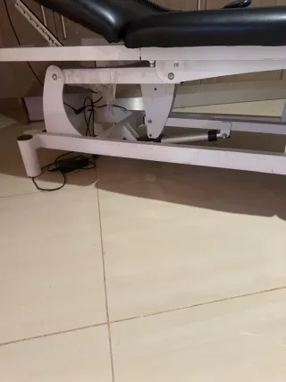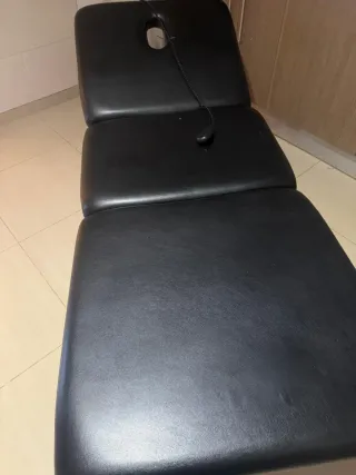 Cama de masaje eléctrica en buen estado. Comprada con factura de garantía en junio 2024. - Perfecta para tratamientos de belleza o fisioterapia. - Estructura de metal resistente. - Tapizado negro en buen estado, con alguna pequeña marca de uso. - Incluye reposacabezas.