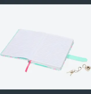 Diario con un divertido estampado de perritos de diferentes razas. Incluye un cierre de corazón con candado y dos llaves.