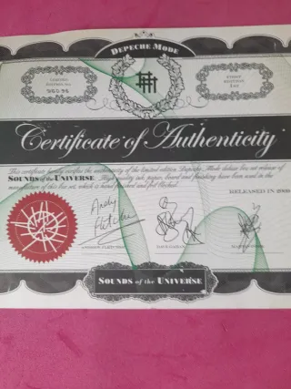 CERTIFICADO DEPECHE MODE SOUNDS OF UNIVERSE