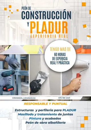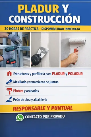 🛠️ PLADUR Y CONSTRUCCIÓN Se realizan trabajos de: • Estructuras y perfilería para pladur y poladur • Masillado y tratamiento de juntas (fina y gruesa) • Pintura y acabados • Peón de obra y albañilería básica