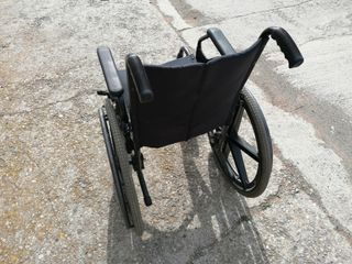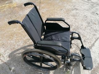 Silla de ruedas plegable Código producto CP775-43 Estribos ajustables Brazos abatibles y extraibles Bloqueo de frenos Medidas: Ancho 60cm Profundidad 101cm Altura 87cm Asiento 43 cm Peso 13kg Capacidad peso MAX 120kg