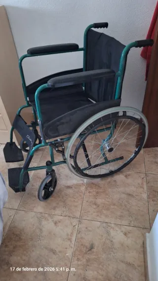 Silla de ruedas pequeñas, plegable fácilmente, con frenos en los puños, muy ligera y fácil de transportar, se pliega hasta el respaldo, está muy nueva, apenas un año de uso