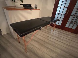 Camilla quiromasaje 1,90 cm que aguanta peso máximo de 160kg. - La camilla estéticamente con el tiempo, la piel tiene algunos desperfectos, pero su función de aguante y rigidez la cumple al 100%. - Llevo con ella varios años y es una camilla para todo tipos de clientes. - Dentro de la camilla se guardan sus accesorios.